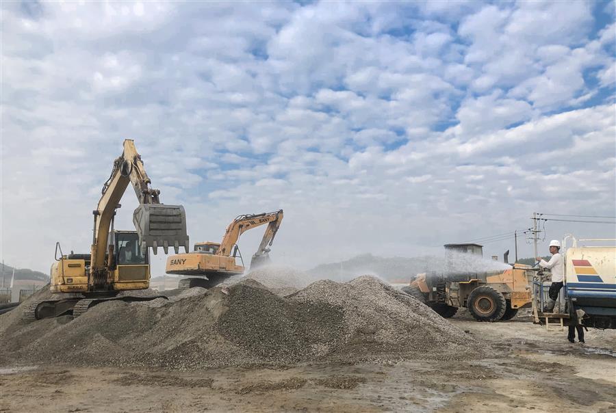 在柳州市洛維路西段北側(cè)規(guī)劃路網(wǎng)工程規(guī)劃一路(A0+000——A0+536.854)、規(guī)劃三路、規(guī)劃五路工程施工現(xiàn)場,挖掘機、沖孔樁樁機、起重機正開足馬力運行,工人們在鋼筋加工棚內(nèi)有序地捆扎鋼筋,放眼過去是一片熱火朝天的景象。針對因沖孔樁線處于沖溝地帶,地質(zhì)情況復(fù)雜,沖孔過程不斷出現(xiàn)漏漿、偏孔現(xiàn)象的問題,現(xiàn)場技術(shù)管理人員帶班作業(yè),全程監(jiān)控澆注過程,確保全線沖孔灌注樁澆筑安全有序進行。