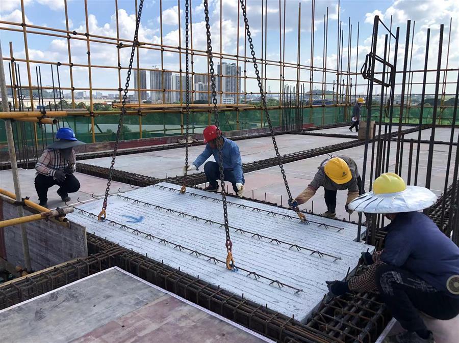 為了避開高溫時段作業(yè),項目工作人員深夜加班加點進行預(yù)制疊合板吊裝作業(yè),有效保證了施工進度,在搶抓施工進度的同時,項目部嚴(yán)把工藝質(zhì)量,嚴(yán)格按照工藝標(biāo)準(zhǔn),逐條逐項落實每一項細(xì)節(jié)、每一道工序,確保了項目的施工質(zhì)量。