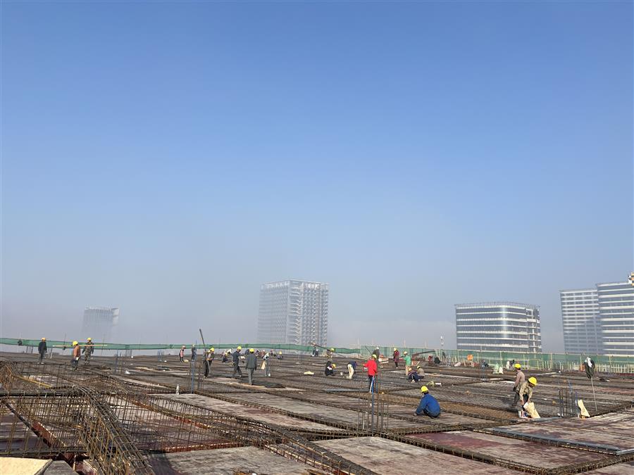 北部生態(tài)新區(qū)智能機器人標(biāo)準(zhǔn)廠房(二期)1#、2#、5#、7#標(biāo)準(zhǔn)廠房、13#、14#甲類庫房工程項目部統(tǒng)籌調(diào)配資源,科學(xué)組織施工,認(rèn)真抓好項目建設(shè)。該項目總建筑面積10.8萬平方米,目前1#標(biāo)準(zhǔn)廠房主體驗收完成,2#標(biāo)準(zhǔn)廠房樁基礎(chǔ)50%,5#標(biāo)準(zhǔn)廠房1-10軸底板墊層完成,11-27軸主體結(jié)構(gòu)封頂。
