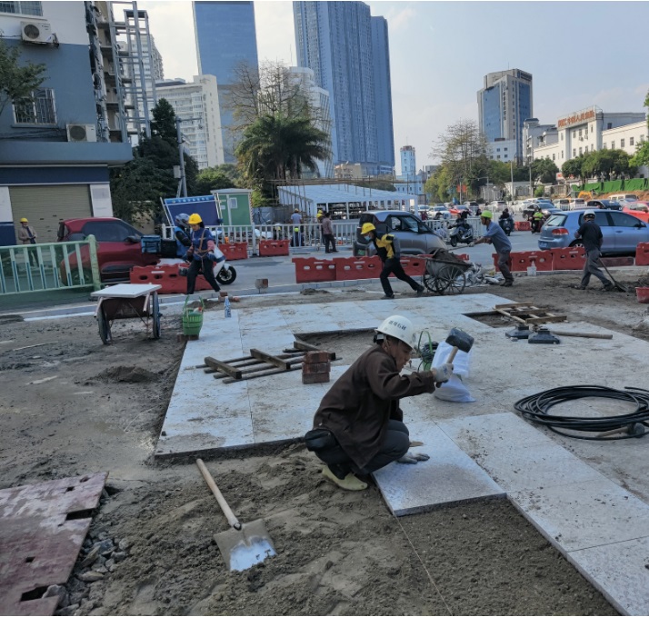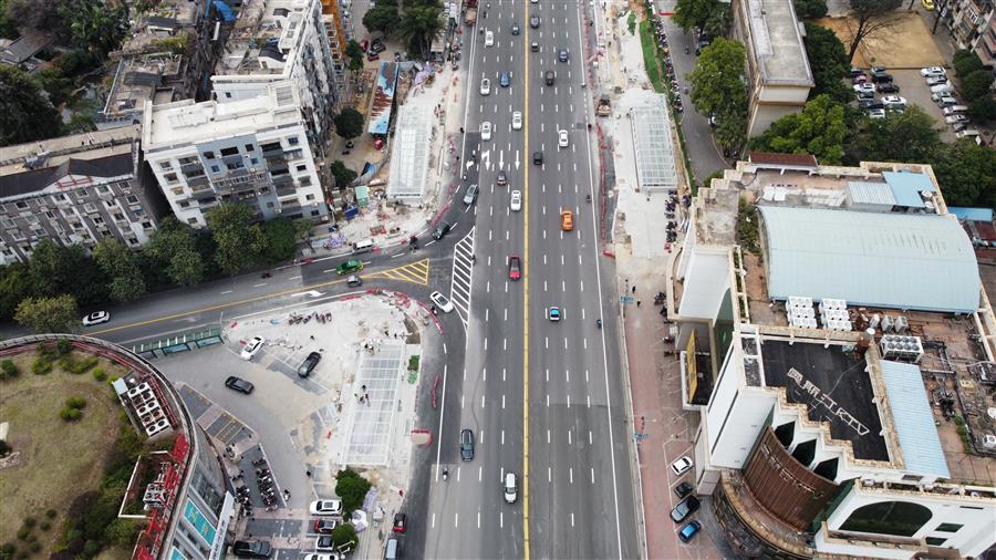 該工程于2022年1月4日開工建設,由于施工現(xiàn)場處于市中心地段,周邊車流、人流量大,施工場地狹窄,地下管線復雜,施工難度極大。為實現(xiàn)2023年春節(jié)開放通行目標,項目部積極協(xié)調各方力量,積極配合相關單位進行遷改、支撐保護,科學合理安排工序,在保證安全生產和施工質量的前提下,發(fā)揚“5+2”“白加黑”連續(xù)作戰(zhàn)精神,全力推進項目建設,截至目前項目僅剩一些收尾工作即可開通。