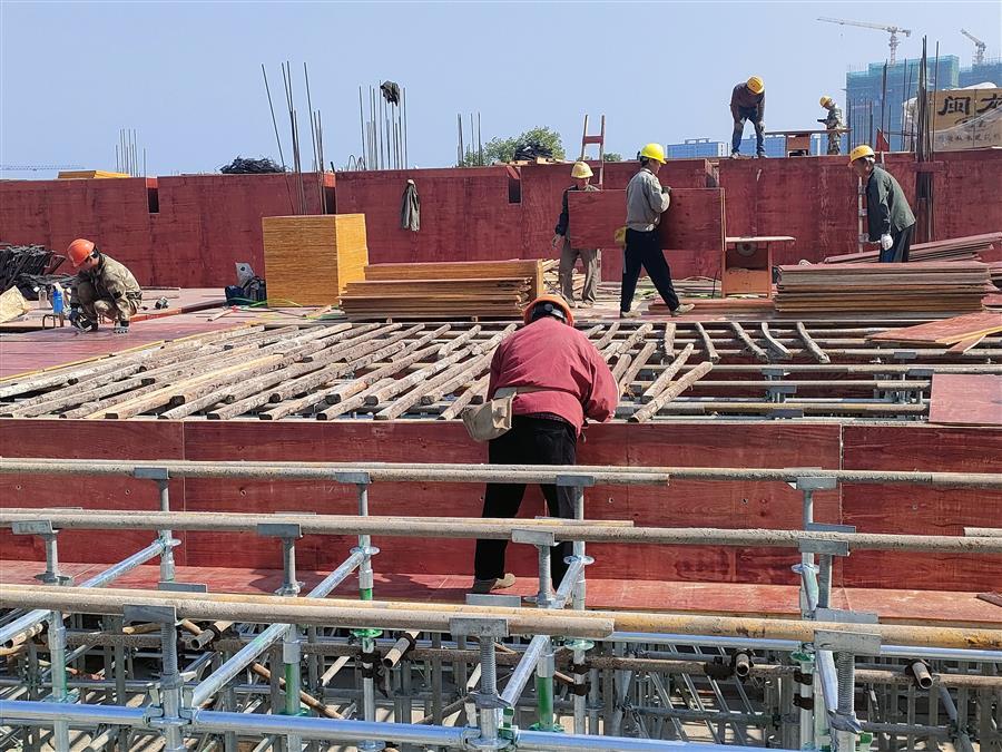 目前,該項目13、15#樓一層結(jié)構(gòu)澆筑完成,二層結(jié)構(gòu)鋼筋綁扎施工中;1、4、8#樓地下一層結(jié)構(gòu)澆筑完成;9、14#樓(人防)筏板澆筑完成,地下結(jié)構(gòu)鋼筋、模板、外架工程施工完成;2、3、5、6、7、10、12#樓筏板澆筑完成,地下一層墻柱鋼筋綁扎施工中;地庫(A1-6、A13-14)底板鋼筋綁扎完成,筏板澆筑完成,累計完成產(chǎn)值約3240萬元。