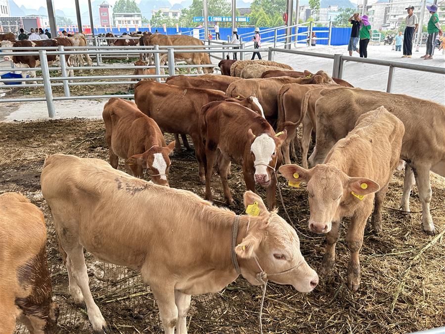 活動現(xiàn)場,熱鬧非凡,大家參觀了農(nóng)特項目園區(qū)及桂中牛行,并對園區(qū)今后的發(fā)展提出了意見和建議。桂中牛行作為農(nóng)特項目園區(qū)內(nèi)的首個主力商家,主營活牛羊交易,副營馬、驢、騾子等草食動物交易。試業(yè)當天,牛群“哞哞”聲此起彼伏,一頭頭體格健壯的牛兒一字排開,人們?nèi)宄扇旱貒墼谝黄?,仔細挑選著心儀的牛兒。一旁的牛崽交易市場內(nèi),買家更是爭相搶購體態(tài)良好的牛崽,市場交易紅火。