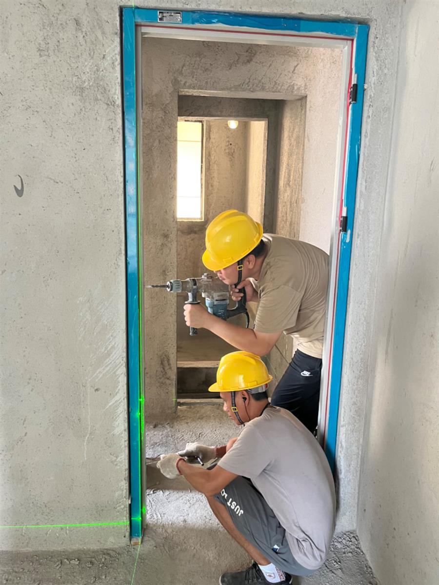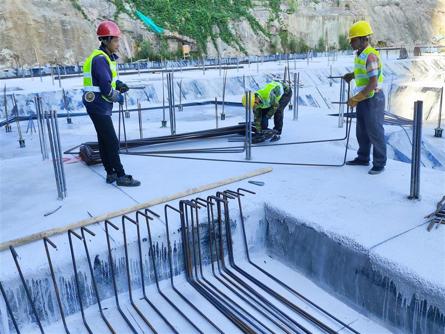 在項目現(xiàn)場,工人們頂著烈日堅守崗位。鋼筋綁扎工人一手固定住鋼筋,一手熟練地把鋼筋綁扎好;電焊工人“全副武裝”,一手舉著防護面罩,一手拿著焊槍嫻熟作業(yè);抹灰工人飛舞著抹灰刀,熟練地向墻面抹水泥砂漿;安裝工人操作電鉆將門窗穩(wěn)穩(wěn)地安裝到位……熱火朝天的大干現(xiàn)場依然井然有序。
