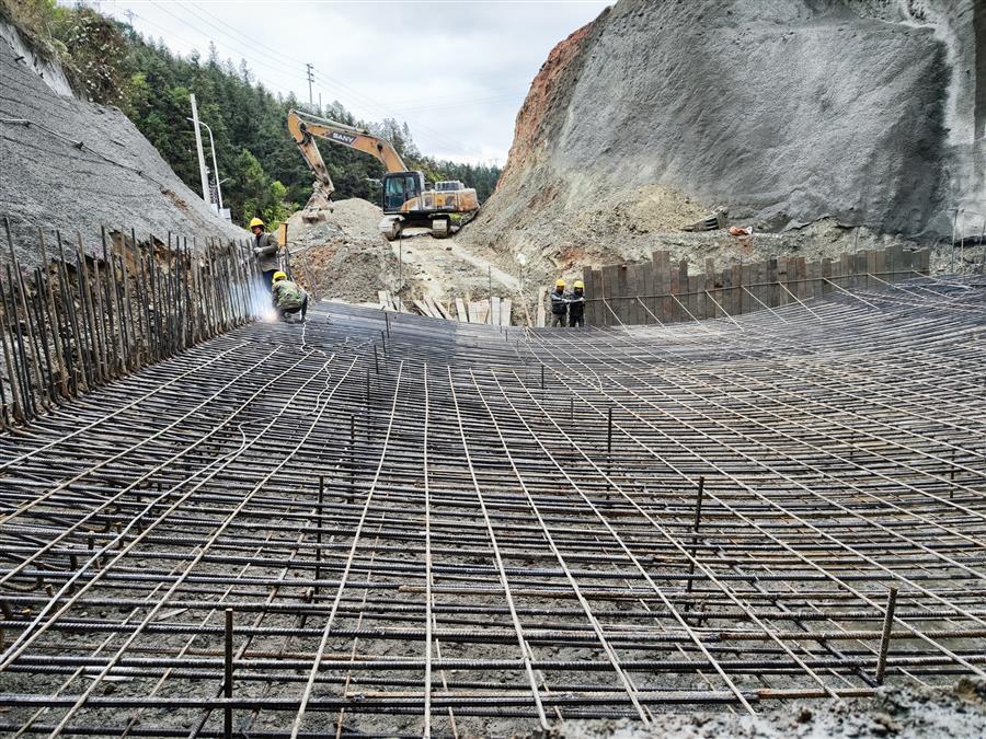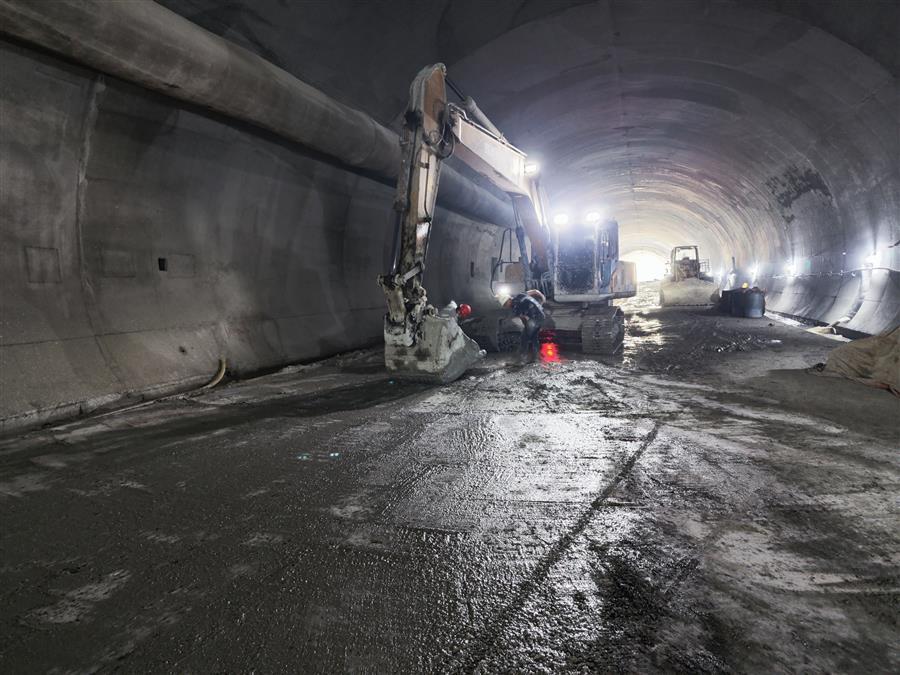 在施工現(xiàn)場,機器轟鳴,挖掘機正在對隧道明洞部分的土方進行開挖,出渣車有序作業(yè)外運渣土;工人們正有條不紊地焊接、搭建地連墻鋼筋籠;在隧道深處,一臺挖掘機在操作人員的操控下,正揮動著“手臂”,配合著工人在對隧道路面做清理?!盀榧涌祉椖渴┕みM度,我們采取人員倒班、設(shè)備不停,白天晚上不間斷施工。”項目經(jīng)理介紹說,目前隧道工程已全面貫通,爭取在春節(jié)前完成仰拱和墻供二襯砼澆筑。
