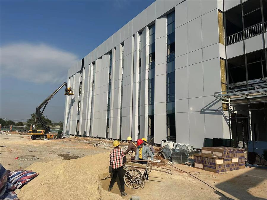 目前,項目1#聯(lián)合廠房外立面均已完成,室內(nèi)消防、鋼結(jié)構(gòu)等均已安裝完畢,暖通以及水電工程、室內(nèi)燈具、器具等正在安裝中。庫房、門衛(wèi)室主體結(jié)構(gòu)已完成、室內(nèi)燈具、器具等正在安裝中。