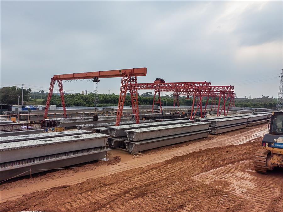 在施工現場,20多臺大型設備在不同時段連續(xù)配合作業(yè),運輸車輛有序進行運土填筑路基、材料進出場,100多名項目管理人員及工人分為預制梁場、樁基施工、橋梁下部結構等班組全線鋪開,在各個作業(yè)點上有條不紊地開展施工作業(yè)。