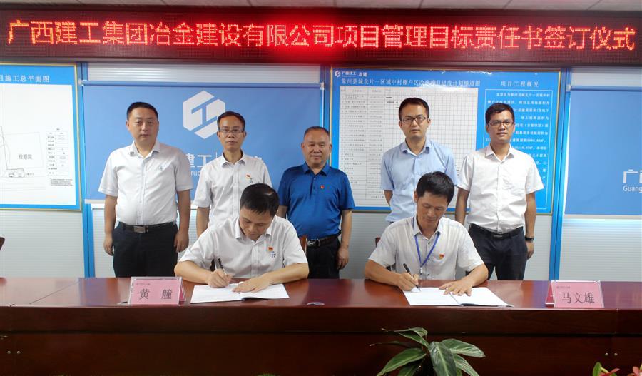 近日,公司項目管理目標(biāo)責(zé)任書簽訂儀式在象州縣城北片一區(qū)城中村棚戶區(qū)改造項目(一期)項目部舉行。公司副總經(jīng)理唐峰,總經(jīng)理助理、副總工程師陳冠東及公司相關(guān)處室、分公司負(fù)責(zé)人參加。