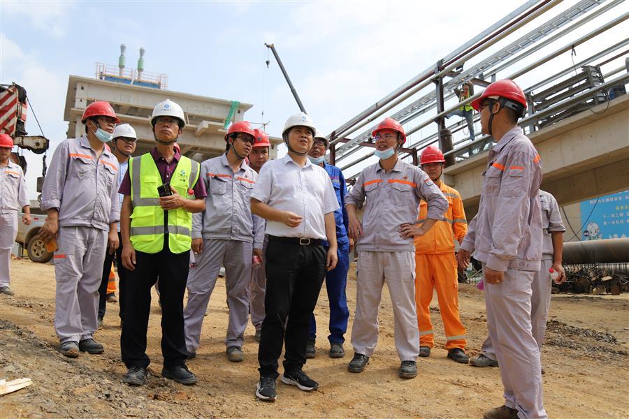 會前,蒙勝益、韋永軍深入項目施工現(xiàn)場,了解各項工作推進(jìn)情況,詳細(xì)聽取項目部各項工作匯報,并就具體工作和問題進(jìn)行交流討論和指導(dǎo)。