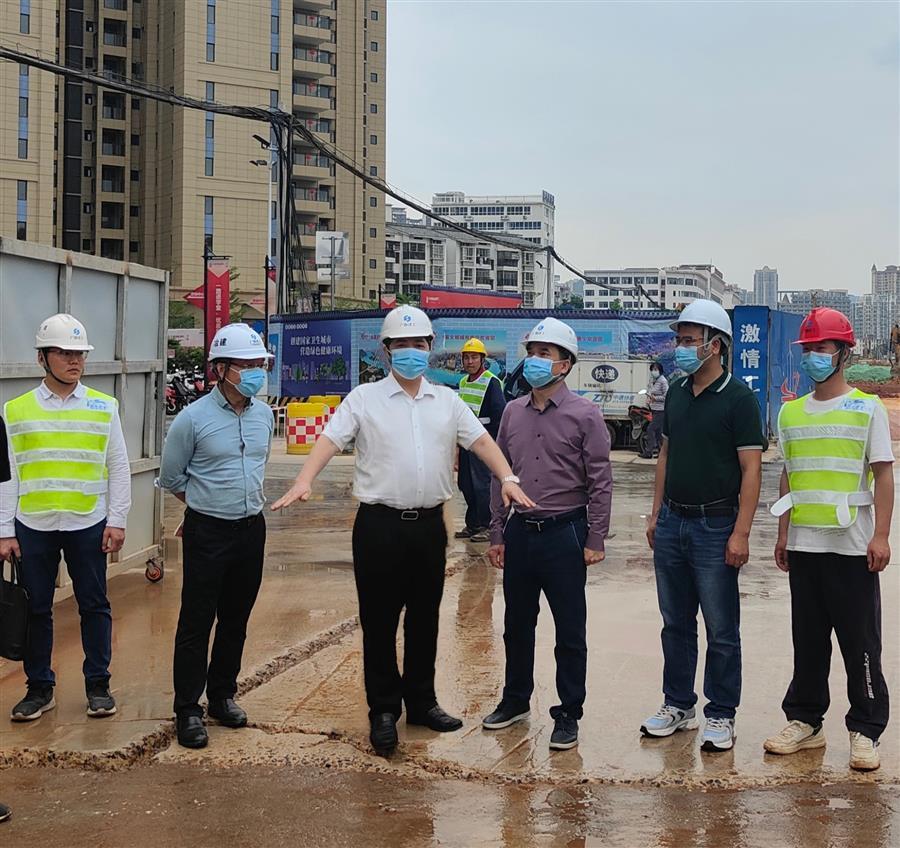 4月15日,冶建公司總經(jīng)理、黨委副書記蒙勝益到桂華分公司承建的南寧軌道交通5號線廣西大學(xué)站至廣西財(cái)經(jīng)學(xué)院(廣財(cái)區(qū)間)地下空間利用工程項(xiàng)目市政配套工程調(diào)研指導(dǎo)。