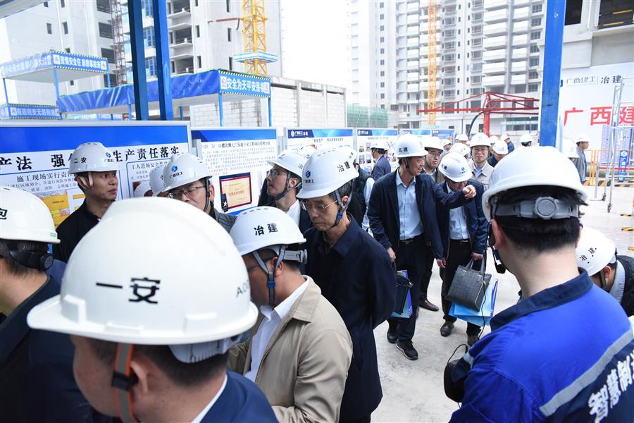 春雨潤(rùn)邕,綠意蔥蘢。4月10日,集團(tuán)公司2023年第二季度安全生產(chǎn)工作會(huì)議暨質(zhì)量安全標(biāo)準(zhǔn)化現(xiàn)場(chǎng)觀摩會(huì),在冶建公司桂鴻分公司施工的北投時(shí)代(二期)項(xiàng)目舉行。集團(tuán)公司總經(jīng)理、黨委副書記、董事羅濤,副總經(jīng)理陳禮松,總經(jīng)理助理、企業(yè)管理部總經(jīng)理、市場(chǎng)經(jīng)營(yíng)部總經(jīng)理劉新寧,集團(tuán)公司各子公司負(fù)責(zé)人及相關(guān)人員近300人參加了此次觀摩會(huì)。