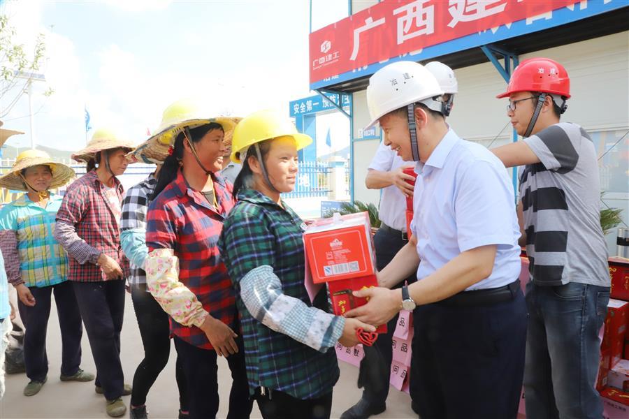 “送清涼啦!”在柳州市柳東新區(qū)竹爾屯棚戶區(qū)改造工程現(xiàn)場,一陣陣興高采烈的歡呼響徹項目部。7月4日下午,集團公司黨委委員、副總經(jīng)理侯立林,市場經(jīng)營部部長駱春燕在高溫酷暑中為施工現(xiàn)場一線職工和勞務(wù)工送來“清涼”,公司黨委書記、董事長歐志永,黨委副書記、紀委書記、工會主席賴海標參加慰問活動。