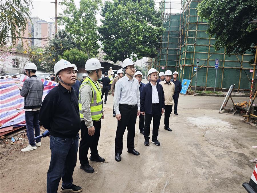 石中華一行深入施工現(xiàn)場(chǎng)了解項(xiàng)目進(jìn)展情況,詳細(xì)了解項(xiàng)目建設(shè)規(guī)模、施工進(jìn)度、安全生產(chǎn)及質(zhì)量管控等情況。在聽取匯報(bào)后,石中華對(duì)項(xiàng)目前期工作成效給予充分肯定,并就項(xiàng)目當(dāng)前推進(jìn)過程中存在的困難與問題提出具體指導(dǎo)意見。他指出,該項(xiàng)目是柳北區(qū)落實(shí)城市更新行動(dòng)、改善老舊小區(qū)居住品質(zhì)的重點(diǎn)民生工程,承載著周邊居民對(duì) “安居夢(mèng)” 的殷切期盼。他要求,施工單位要提高政治站位,強(qiáng)化責(zé)任擔(dān)當(dāng),嚴(yán)格落實(shí)安全生產(chǎn)主體責(zé)任,緊盯施工安全與工程質(zhì)量雙底線,搶抓施工黃金期,倒排工期、掛圖作戰(zhàn),確保項(xiàng)目按 180 日歷天工期高效推進(jìn),讓居民早日實(shí)現(xiàn)安居宜居。他強(qiáng)調(diào),當(dāng)前正值春季施工關(guān)鍵期,要統(tǒng)籌做好施工組織與現(xiàn)場(chǎng)管理,優(yōu)化施工方案,加強(qiáng)項(xiàng)目標(biāo)準(zhǔn)化規(guī)范化建設(shè),全力推動(dòng)項(xiàng)目提質(zhì)提速增效,柳北區(qū)區(qū)委、區(qū)政府也將全力給予項(xiàng)目支持保障。同時(shí),要始終把群眾利益放在首位,加強(qiáng)與街道、社區(qū)、居民的溝通聯(lián)動(dòng),及時(shí)回應(yīng)群眾訴求,做好施工期間的便民服務(wù)與環(huán)境保障,爭(zhēng)取群眾最大理解與支持。