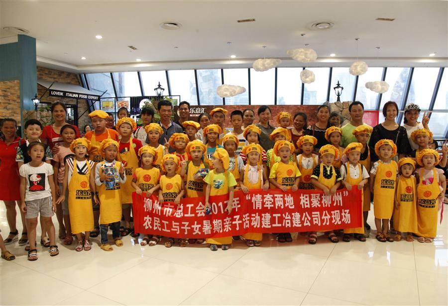 8月11日下午,在柳州步步高廣場樂意匯休閑餐廳中充滿著孩子的歡聲笑語,“2017年‘情牽兩地,相聚柳州’農民工與子女暑期親子活動建工冶建公司分會場”活動在這里溫情開展。此次活動由柳州市總工會主辦,廣西冶建公司工會承辦,近四十個農民工家庭歡聚一堂,共同享受平日里難得的清閑與快樂。