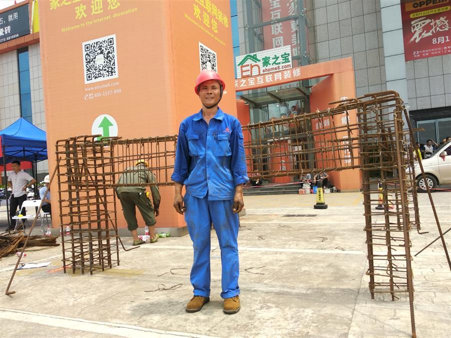 8月31日,在柳州家居建材博覽中心室外廣場(chǎng)上,一群頭戴安全,身著工裝的農(nóng)民工在各自忙碌著,不時(shí)傳來“叮叮?!变摻钆鲎猜?、“嘩嘩嘩”刨木聲、“咚咚咚”敲磚聲……伴隨著一片熱鬧的聲響,柳州市第四屆農(nóng)民工技能大賽暨柳州市第三屆農(nóng)民工家庭服務(wù)業(yè)大賽火熱舉行。