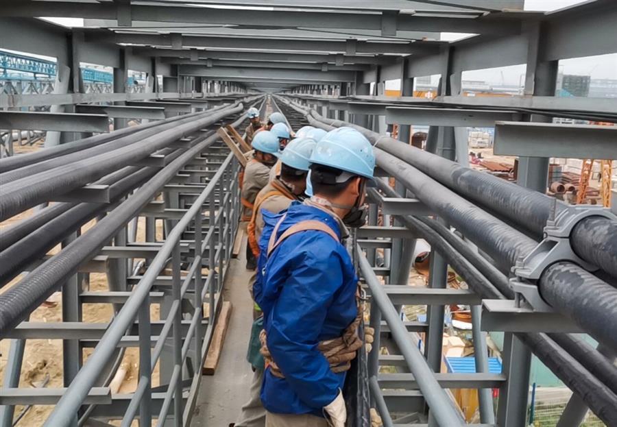 在防城港鋼鐵基地項目(一期)動力系統(tǒng)電力設施工程——10kV電力電纜敷設項目施工現場,工人們各司其職、齊心協力,努力推進項目建設。