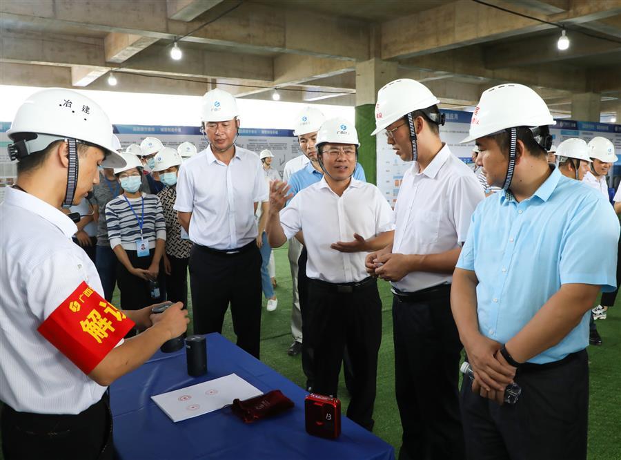 活動中,龍杏華首先表示,此次觀摩會是來賓市近年來舉辦過水平最高的一次觀摩會,感謝廣西建工冶建公司以及現(xiàn)場管理人員的努力付出,大家秉承工匠精神建設(shè)出了工程質(zhì)量優(yōu)、安全文明標(biāo)準(zhǔn)高的示范項目。隨后,龍杏華還宣講了習(xí)近平總書記關(guān)于安全生產(chǎn)的重要論述,并對下一步工作提出三點要求。一是高度重視,強化學(xué)習(xí),提高安全生產(chǎn)理論基礎(chǔ)。全市住建系統(tǒng)、各建筑企業(yè)要扎實開展安全生產(chǎn)警示教育學(xué)習(xí)和典型事故案例警示宣講活動,督促行業(yè)從業(yè)人員深刻汲取事故教訓(xùn),提高安全防范意識、風(fēng)險辨識能力和應(yīng)急處置能力,督促企業(yè)相關(guān)責(zé)任人強化安全生產(chǎn)紅線意識和底線意識,確保安全生產(chǎn)。二是深刻吸取事故教訓(xùn),全面做好建筑施工安全生產(chǎn)工作。要強化建筑施工預(yù)防坍塌、防墜落事故專項檢查;強化企業(yè)安全生產(chǎn)主體責(zé)任落實;強化建設(shè)工程行業(yè)主管部門監(jiān)管責(zé)任落實;強化對建筑施工事故依法嚴(yán)肅查處;強化安全生產(chǎn)和文明施工宣傳教育培訓(xùn);切實做好汛期和夏季消防安全工作。三是繼續(xù)推進(jìn)“一金七制”,全面做好建筑領(lǐng)域治欠保支各項工作。要繼續(xù)推進(jìn)“桂建通”平臺應(yīng)用;全面梳理排查,健全完善在建工程項目臺賬;要健全根治機(jī)制,加強部門協(xié)同配合。