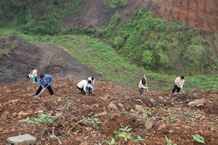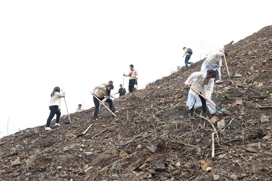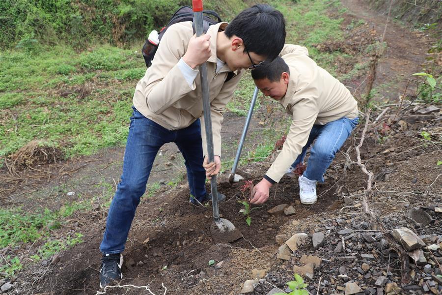 活動現(xiàn)場,青年志愿者分組分片區(qū)開展植樹活動。各小組團(tuán)員青年分工協(xié)作、默契配合,鏟土挖坑、立苗填土,個個熱情高漲、干勁十足,活動現(xiàn)場氣氛熱烈。經(jīng)過大家熱火朝天的忙碌,一排排新種樹苗有序“落根”,山坡上煥發(fā)出盎然生機(jī)。