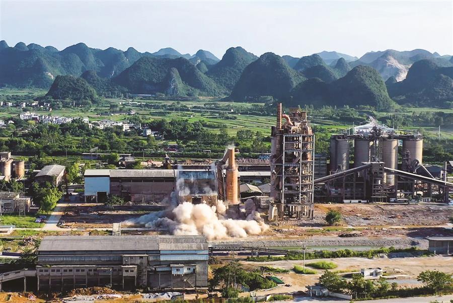 “倒計(jì)時(shí)5—4—3—2—1起爆!”2020年8月28日,起爆命令語(yǔ)音剛落,“砰”的一聲廣西魚(yú)峰水泥技改工程爆破拆除項(xiàng)目最后一棟高聳建筑應(yīng)聲倒向設(shè)計(jì)方向預(yù)定地點(diǎn)。