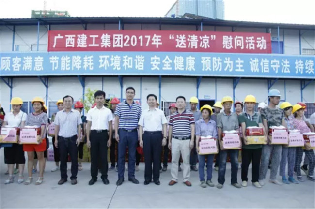 柳州市高新區(qū)科技園專家公寓樓工程由我司桂華分公司承建。8月7日下午,廣西建工集團(tuán)副總經(jīng)理侯立林冒著高溫酷暑,專程從南寧前來項目建設(shè)現(xiàn)場給一線職工和農(nóng)民工“送清涼”,公司領(lǐng)導(dǎo)歐志永、賴海標(biāo)、廖立波參加活動。130多份價值9000多元的慰問品,在十多分鐘的時間里,全部發(fā)放完畢。