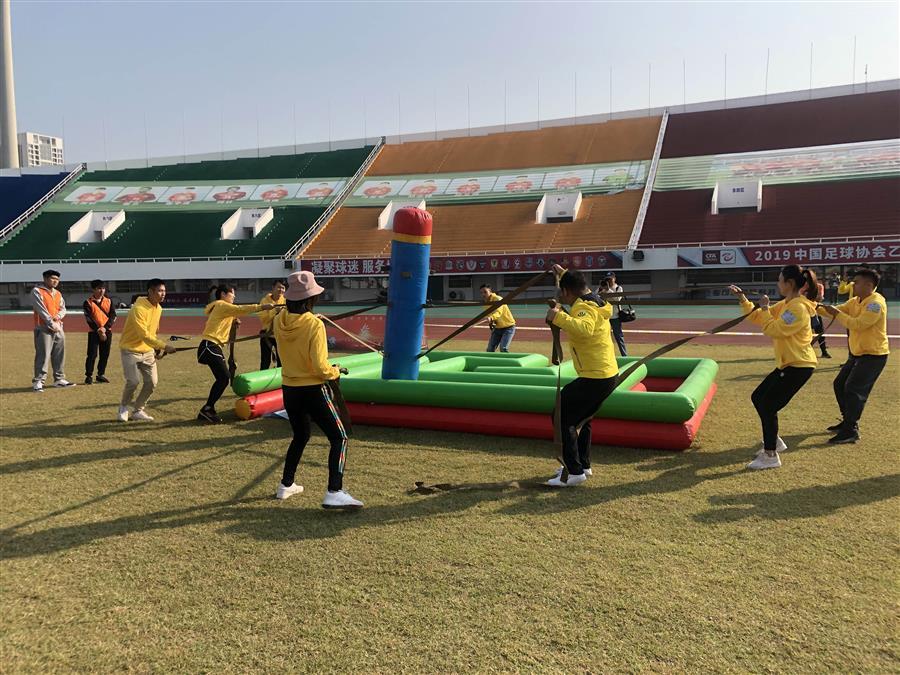 公司代表隊首先參加的是迷宮逃脫,眾人拾材火焰高,在8名隊員的合力協(xié)作下,隊員走位并協(xié)同快速地將灌有水的大型鉛筆道具拉出了迷宮。
